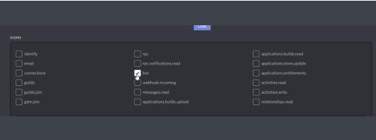 Scroll back up to where we just defined the scope as Bot (In the OAuth2 scope) and copy the URL it provides.
